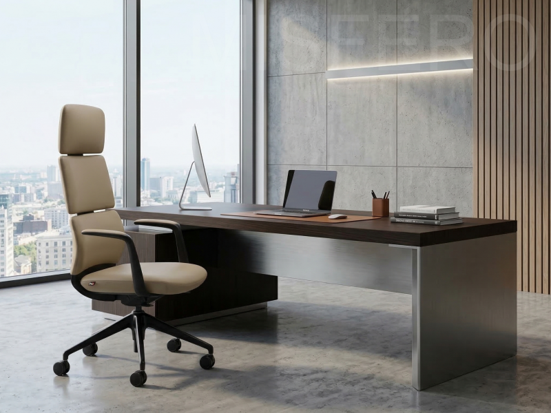 натуральной кожи и чёрного алюминия придают креслу лёгкость и изящество.